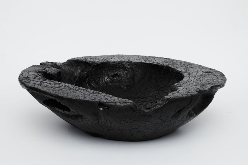 Bowl is made from hand carved old growth teak wood and torch burned Shou Sugi Ban finish, finished off with a clear coat finish and black wax polish. This is a unique item.